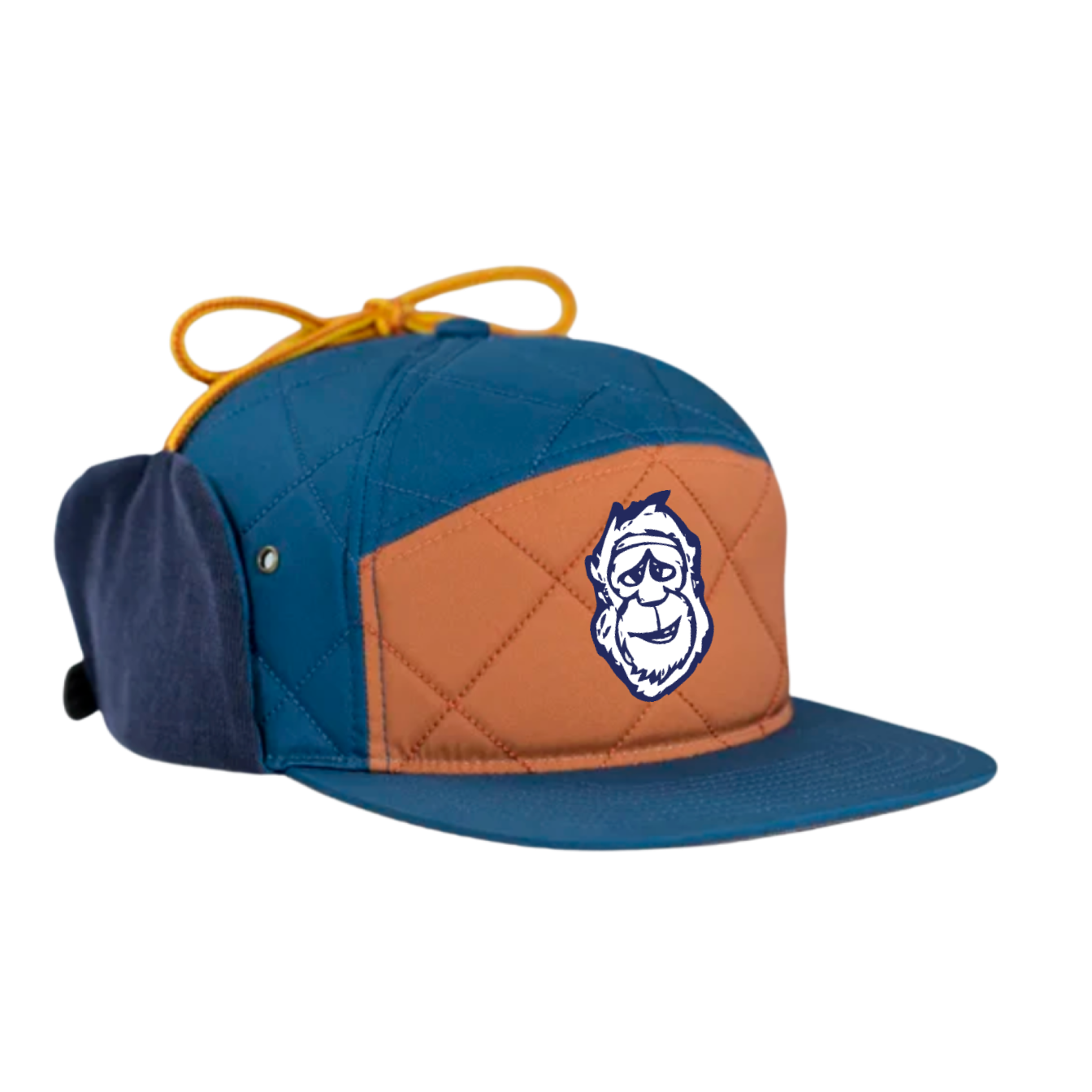 A custom hat created in collaboration with Bigfoot Endurance. This Yeti is ready to stomp through the snow, with quilted nylon fabric and corduroy-lined ear flaps to keep you warm. The blue and rust-orange fabric gives this a classic look.