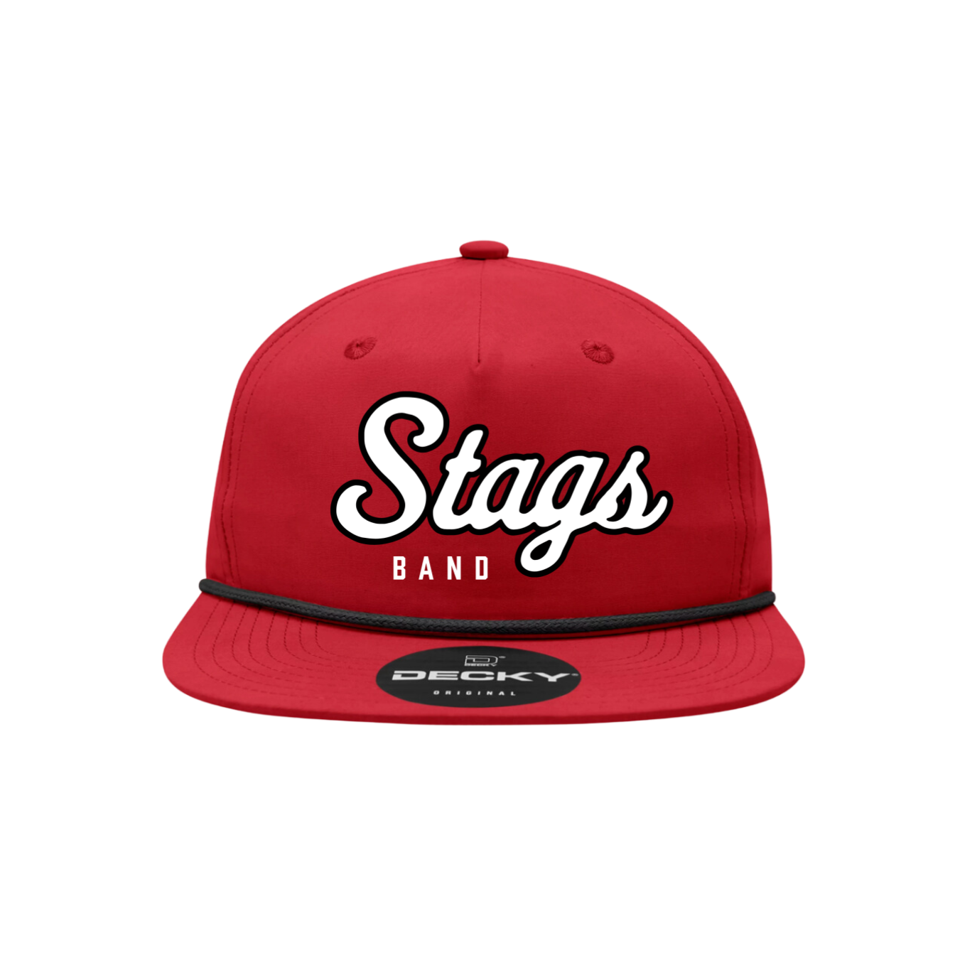 This old-school hat is all about vintage vibes - made better with Stags script lettering raised on the front of red hat finished off with a black rope across the brim and "Band" for a look that works anywhere.